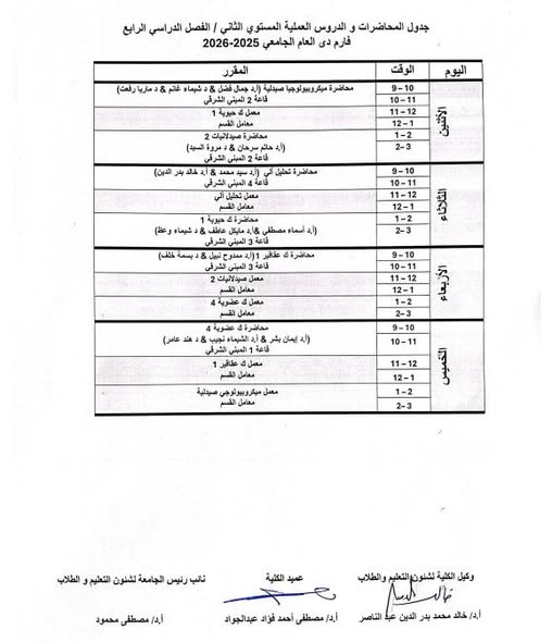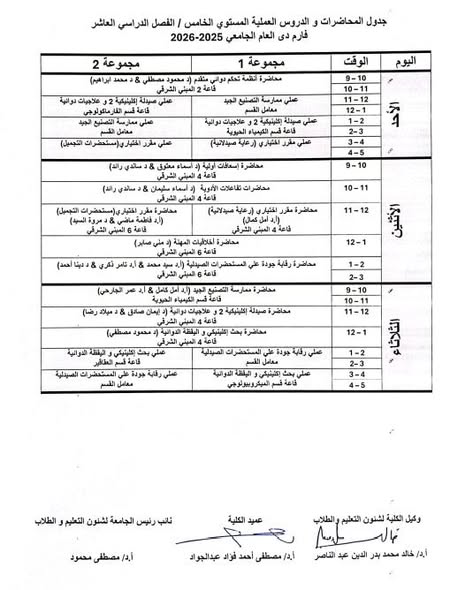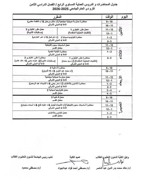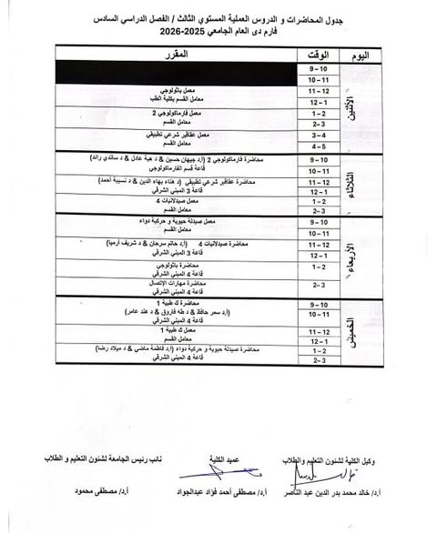 The Faculty of Pharmacy announced academic study schedule for the PharmD program for the second semester of the academic year 2025/2026.