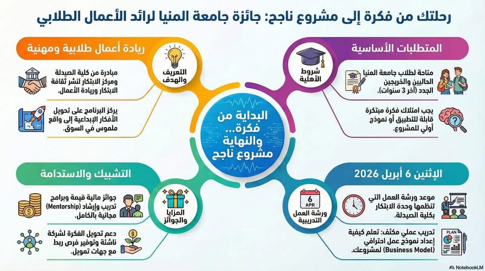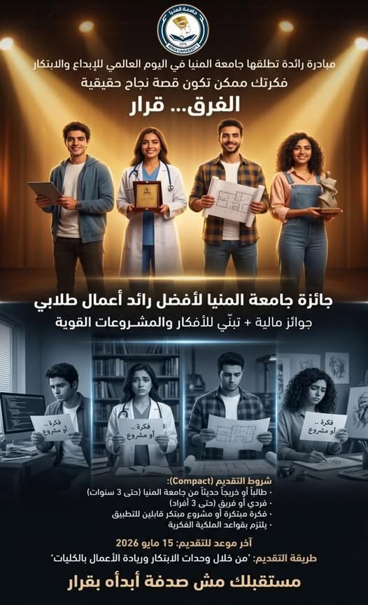 إعلان هام | جائزة جامعة المنيا لأفضل رائد أعمال طلابي