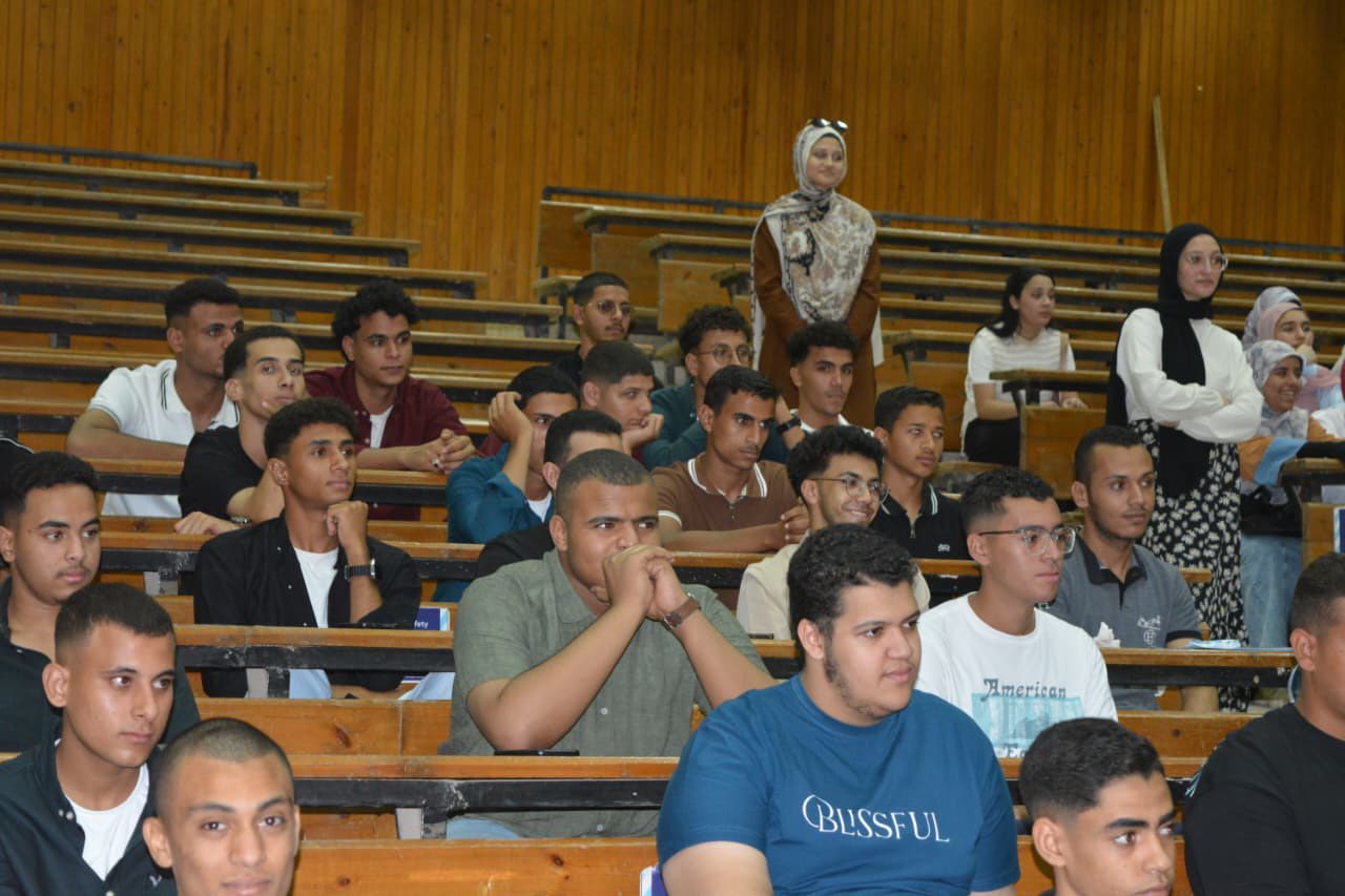 فعاليات اللقاء التعريفي لطلاب الفرقة الأولى بكلية الصيدلة – جامعة المنيا نظّمت كلية الصيدلة – جامعة المنيا اللقاء التعريفي لطلاب الفرقة الأولى ببرنامجي:  فارم فادي  فارم دي – الصيدلة الإكلينيكية  انعقدت الفعاليات داخل أحد مدرجات الكلية، بحضور:  الأستاذ الدكتور مصطفى أحمد فؤاد – عميد الكلية  الأستاذ الدكتور خالد محمد بدرالدين – وكيل الكلية لشئون التعليم والطلاب  الأستاذة الدكتورة فاطمة ماضي – منسق برنامج الصيدلة الإكلينيكية  الأستاذ الدكتور مصطفى فتحي – المنسق العام للأنشطة الطلابية إلى جانب رئيس اتحاد الطلاب  تخلل اللقاء تقديم عرض تعريفي بالبرامج الأكاديمية، واستعراض لأهم محاور العملية التعليمية داخل الكلية، بالإضافة إلى إلقاء الضوء على رسالة الكلية ورؤيتها في إعداد كوادر صيدلانية متميزة قادرة على مواكبة سوق العمل المحلي والإقليمي.  جاء اللقاء في أجواء تفاعلية مميزة عكست حرص الكلية على مد جسور التواصل مع طلابها الجدد، وتهيئتهم لمرحلة جامعية واعدة مليئة بالعلم والإنجاز.